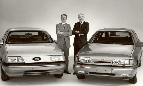 During the 1970s and early 1980s, the nation underwent a period of grueling and traumatic transformation from an industrial economy based on the production of things to a postindustrial economy based on the production of services and images. During this transition, the market for cars was rather flat, as lay-offs and inflation eroded consumer buying power. But America’s culture of compensatory consumption did not fundamentally change during this period. So when the oil shortages abated and the new postindustrial economy started to grow in the mid-1980s, Americans searching for meaning in these uncertain times once again looked to automotive fantasies. The leader of this new phase of automotive consumerism was a newly enriched class of young urban professionals and entrepreneurs, many of whom had been full-fledged members of the VW-driving counterculture of the 1960s. Also known as the yuppies, these affluent people looked for a way to express their newfound success without being too ostentatious or violating their environmental values. They found an automotive match in German luxury makes like Mercedes-Benz, Audi, and BMW. Although they were expensive, these cars were designed with a severe, high-tech functionalism that was certainly not indulgent or extravagant. And bringing back a theme from the 1930s, these German cars were aerodynamically designed to cut drag and save fuel. Taking note of this new, more responsible and efficient consumerism, Detroit stylists also caught the "aero" bug, with Ford Motor Company leading the way with innovative models like the Thunderbird, Tempo,