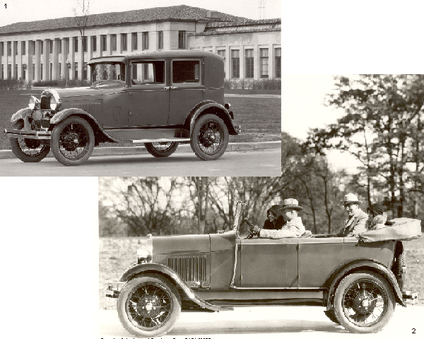 | The Ford Model A was a complete break with the company’s Model T past. Catering to new customer demands for style, the Model A borrowed many design cues from the expensive Lincoln. (Top) A 1928 Model A four-door sedan, which the motor company called a “Fordor.” (Bottom) A 1928 Model A Phaeton. | ||||||