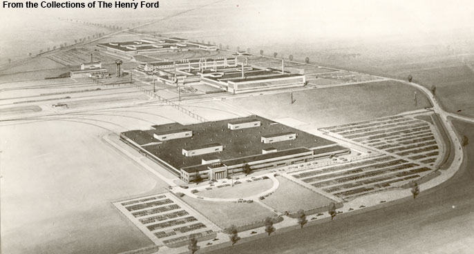 Located in Brook Park, Ohio, just outside of Cleveland, this addition to the Ford Motor Company plants brought together man and machine in a series of complex, automated stalls and runways. In the early 1950s it was, according to the Ford News Bureau, “the nearest approach to a fully- automated plant in the automotive industry.” Here (above) we can see an overview drawing of engine plant #2. The plant’s “electric brain” or nerve-center (below) receives bits of information continuously from electric switches acting as lookouts in the production department. It complies the data, makes the best possible decision as to a course of action, then directs steel “arms” and “fingers” of steel, without human guidance, to pick up, turn over, turn around, and move from one automatic machine to another large components such as 180-pound engine blocks. While its human counterpart must concentrate on one thing at a time, the “electric brain” is able to direct a multitude of shop operations simultaneously.